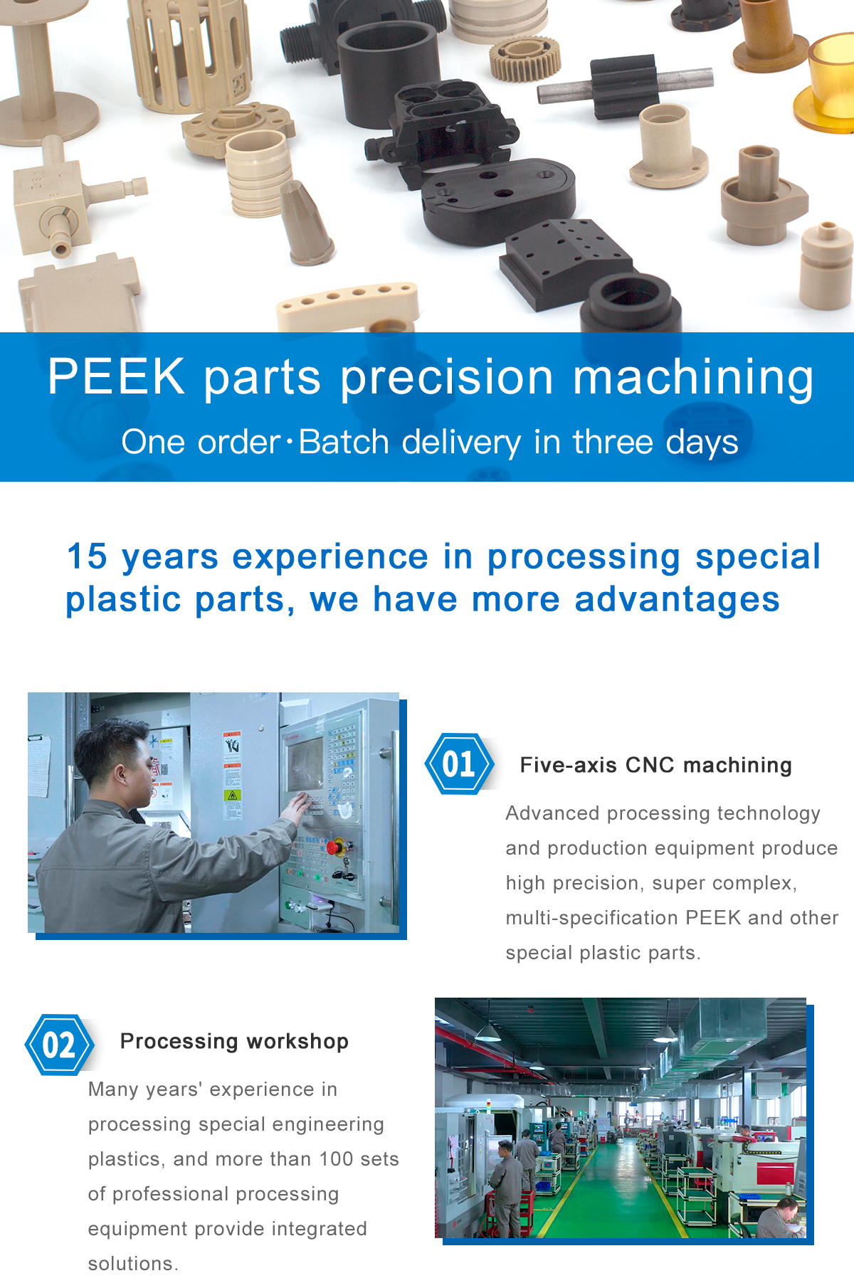 PEEK has the heat resistance, chemical stability of thermosetting plastics and the processing ability of thermoplastic molding. PEEK has a long-term service temperature of about 260-280℃, a short-term service temperature of 330℃, and high pressure resistance of up to 30MPa. It is a good material for high temperature sealing rings. PEEK products are suitable for all kinds of harsh working conditions in the environment. In addition, PEEK also has excellent properties such as good self-lubrication, easy processing, stable insulation and hydrolysis resistance, which makes it widely used in aerospace, automobile manufacturing, electrical and electronic, medical treatment and food processing and other fields. Due to the unique performance advantages of PEEK materials, PEEK products can be widely used in petrochemical engineering, electronic and electrical, instrumentation, machinery and automobiles, medical and health care, aerospace, military, nuclear energy and many other fields.