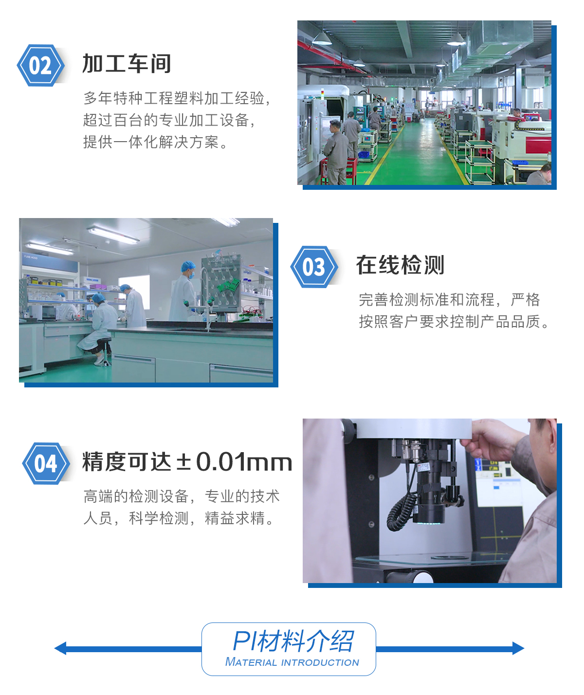 南京首塑特種工程塑料制品有限公司可以根據客戶(hù)具體需要提供耐溫等級分別為220℃、260℃、300℃、350℃以上的超耐高溫特種工程塑料-聚酰亞胺型材,如棒材、板材、管材以及注塑、機械加工的制成品。聚酰亞胺可以與二硫化鉬、石墨、碳纖維、聚四氟乙烯等復合,能大大改變材料的力學(xué)強度和自潤滑耐磨等性能。本公司可以根據客戶(hù)產(chǎn)品工況的不同要求,量身定做不同配方的材料。